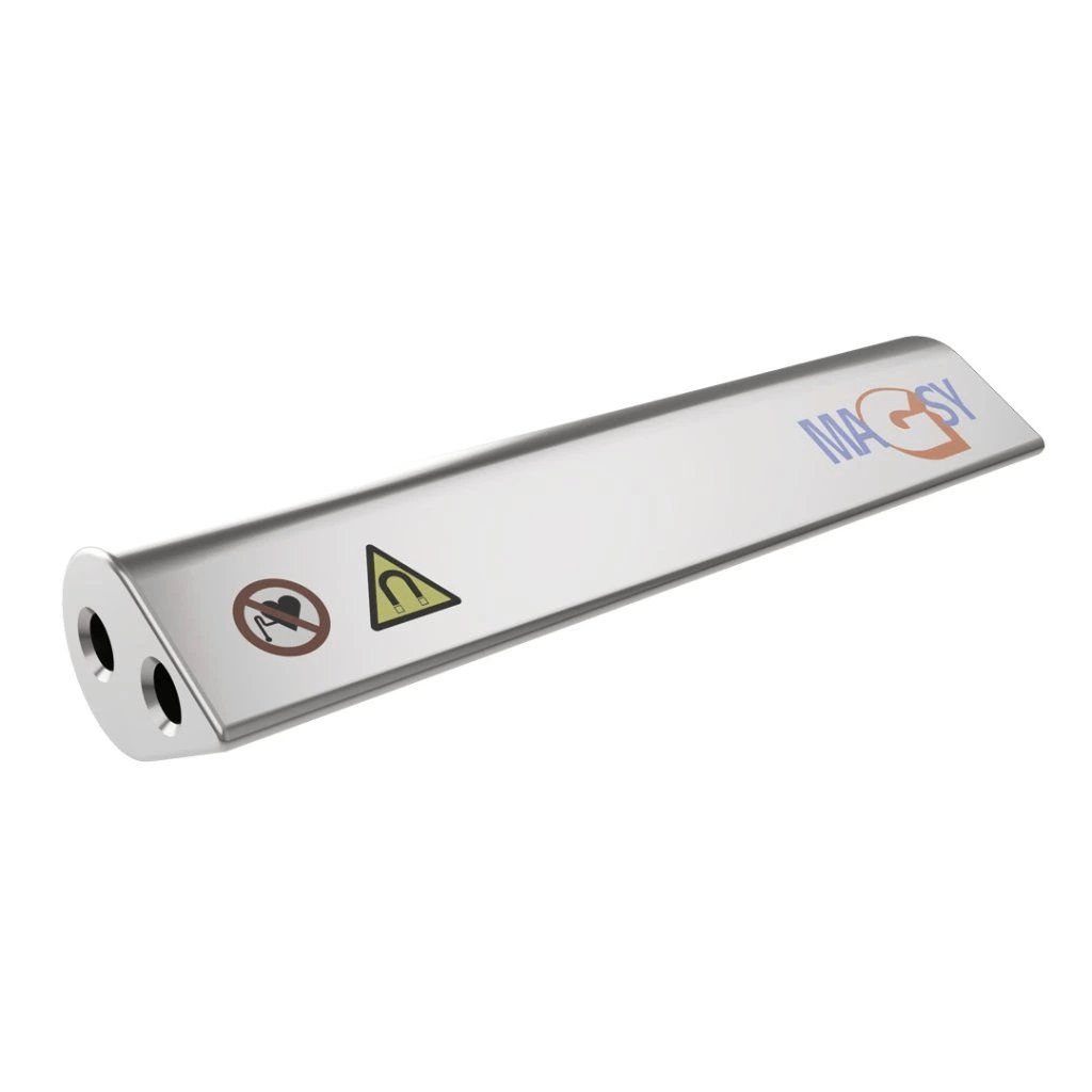 Der Magnetstab ist primär zur Herstellung eines Magnetrosts nach Kundenbedarf bestimmt. An einer Seite befindet sich ein Gewinde. Mit Hilfe dieses Gewindes können Sie diesen Stab an beliebigem Flachstahl oder in eine andere, von Ihnen entworfene Hilfskonstruktion schrauben. Hilfskonstruktionen, Flachstähle, Halterungen sowie Verbindungsmaterial sind nicht Bestandteil der Lieferung des Magnetstabs. Aufgrund der sehr hohen Magnetkraft weisen wir auf die Notwendigkeit hin, nichtmagnetischen Stahl für alle Materialien zu verwenden, aus denen Ihre Hilfskonstruktion oder jede Halterung zur Befestigung der Magnetstäbe hergestellt wird; ebenso muss das Verbindungsmaterial in nichtmagnetischer Ausführung ausgeführt sein. Der Mindestabstand zwischen den Stäben nach der Installation an Ihrer Hilfskonstruktion, Halterung oder Flachleiste darf nicht geringer als 20 mm sein. Dies ist aus Sicherheitsgründen bei der Installation erforderlich und außerdem, damit sich die Stäbe nicht durch Magnetkraft selbsttätig anziehen. Denken Sie auch an die Eigenschaften des Materials (schüttfähig wie auch flüssig), damit der gewünschte Durchfluss und Durchsatz erhalten bleibt. Falls Sie Hilfshalterungen für Magnetstäbe in Eigenregie entwerfen, können wir keinerlei Verantwortung für die richtige Funktion der Magnetstäbe übernehmen. Wenn Sie sich bei der Installation oder der Zusammenstellung zu einem Magnetrost nicht sicher sind, kaufen Sie den Magnetstab nicht und kontaktieren Sie unsere technisch-kaufmännische Abteilung. Wir weisen auf die sehr hohe Intensität der Magnetkraft hin. Gehen Sie bei der Planung und Herstellung Ihrer eigenen Anordnung mehrerer Magnetstäbe nebeneinander und insbesondere beim Verschrauben (jeglicher Montage) in einer Baugruppe mit erhöhter Vorsicht vor; trennen Sie einzelne Magnetstäbe mit nichtmagnetischen Abstandshaltern voneinander, z. B. mit einer Holzplatte. Es besteht ein erhöhtes Verletzungsrisiko durch das Zusammenziehen der Magnetstäbe! Halten Sie alle magnetischen Materialien, Konstruktionen und Werkzeuge wie Hämmer, Zangen, Schraubstöcke in einem Mindestabstand von 200 mm von den Magnetstäben. Achten Sie auch auf den Arbeitstisch, der nicht aus Eisen (ferromagnetisch) sein darf!