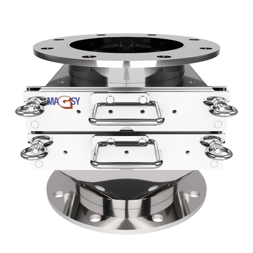 Der Magnetabscheider ist nur für den Einsatz in nichtkontinuierlichen Betrieben geeignet (während der manuellen Reinigung des Magnetabscheiders muss der Materialfluss des zu reinigenden Materials gestoppt werden). Er wird ausschließlich in senkrechte Rohrleitungen installiert (falls eine senkrechte Installation nicht möglich ist, verwenden Sie dieses Produkt nicht und kontaktieren Sie uns zur Auswahl eines anderen Magnetabscheiders bzw. zur Bestätigung der Eignung des Einsatzes), z. B. in der Lebensmittel- und Chemieindustrie, in der Landwirtschaft, in der Abfallverarbeitungsindustrie sowie bei der Herstellung von Baustoffen – siehe Liste geeigneter Materialien unten.
