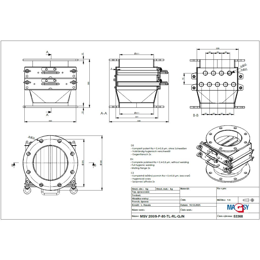 | Material: | Edelstahl DIN 1.4301, EN 10088, ČSN 17240, AISI 304, AKV 7 – nicht stabilisierter austenitischer Chrom-Nickel-Stahl (X5CrNi 18-1 |