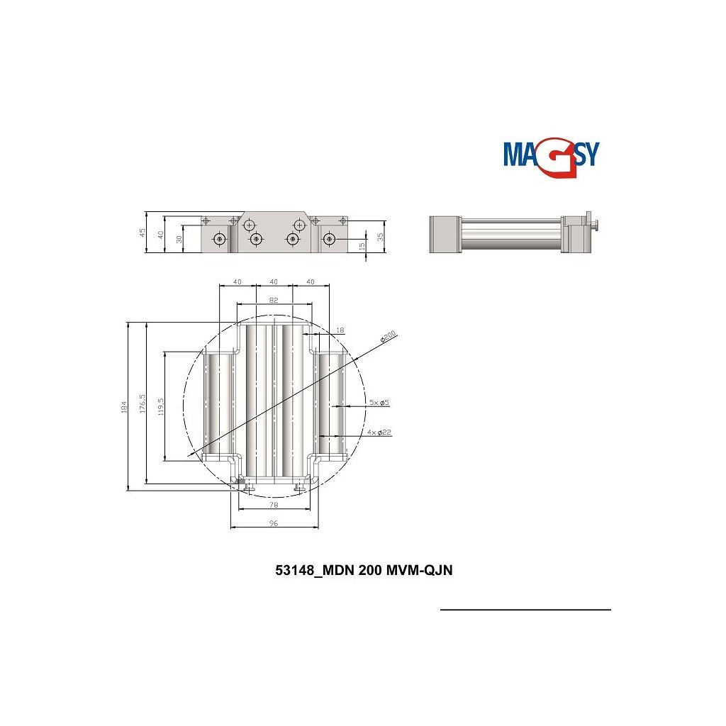 Magnet für den Fülltrichter einer Spritzgussmaschine, DN 200 mm, 80 °C, 10.000 Gs, 66 N