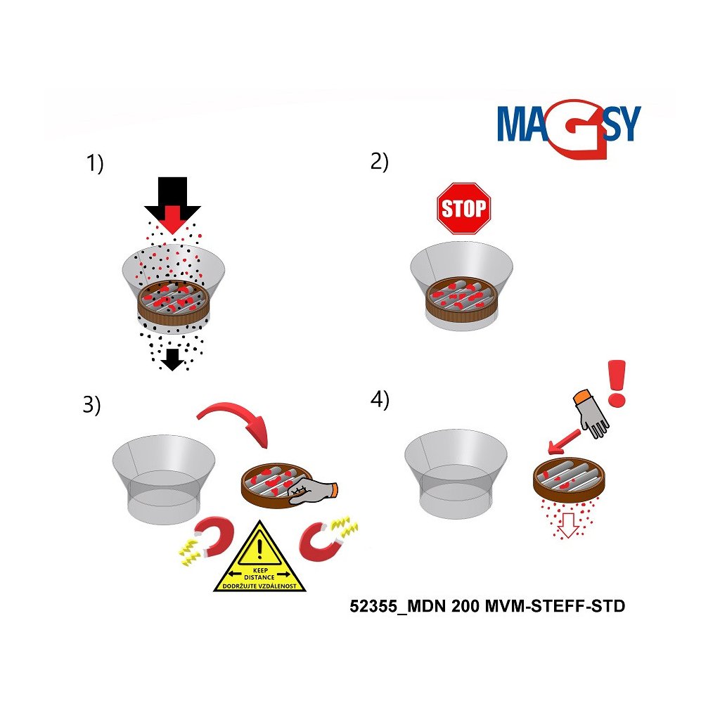 Magnet für den Fülltrichter einer Spritzgussmaschine MDN 200 MVM-STEFF-STD, 4.530 Gs, 35,5 N
