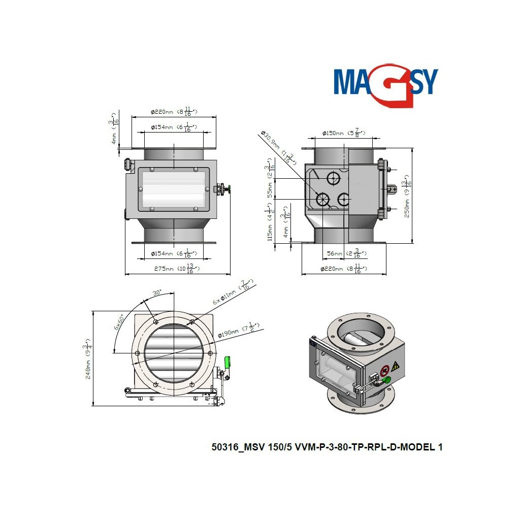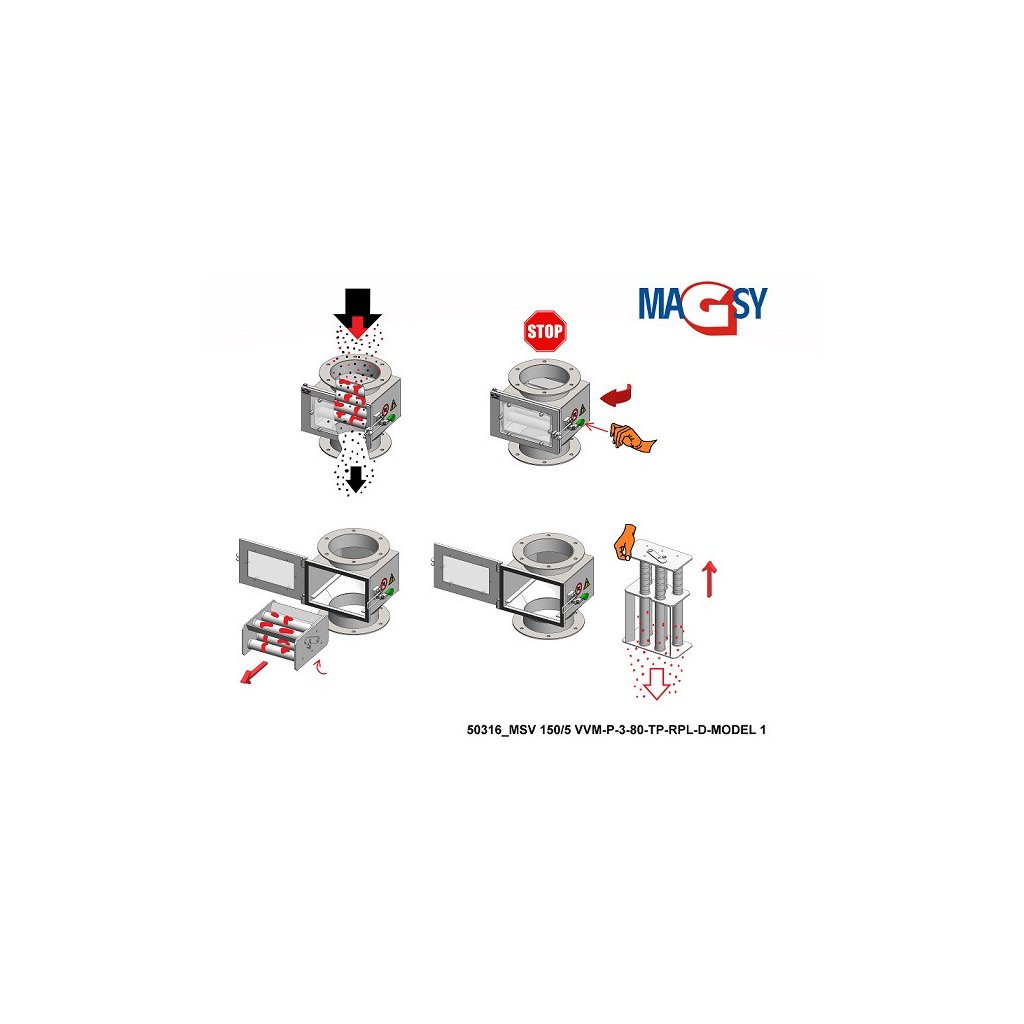 Magnetabscheider mit ausziehbaren Magnetrosten MSV 150/5 VVM-P-3-80-TP-RPL-D-MODELL 1