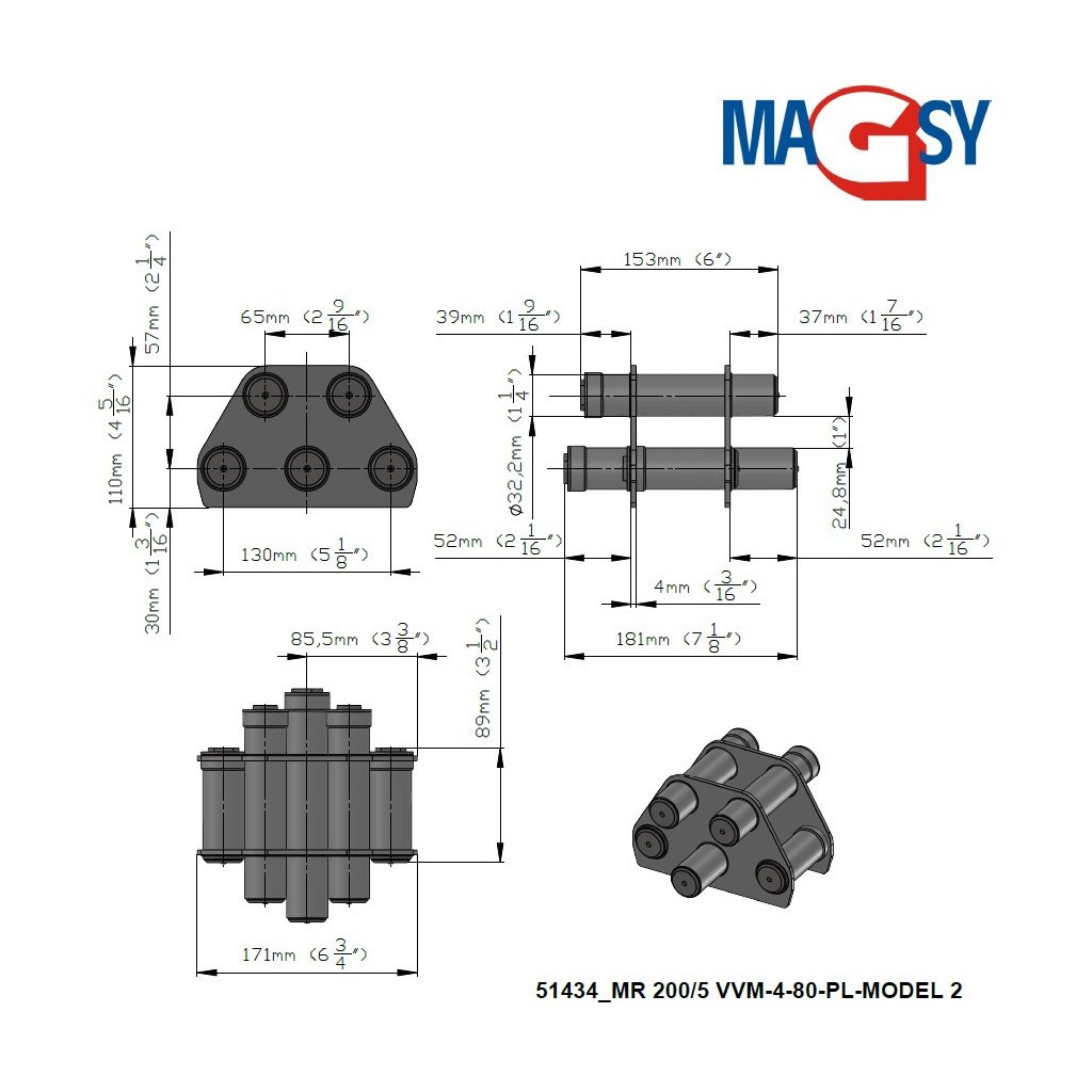 Magnetrost mit ausziehbaren Magnetkernen MR 200/5 VVM-4-80-PL-MODELL 2