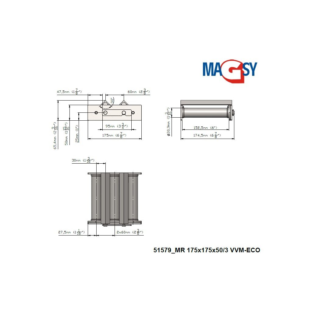 Wir weisen nochmals darauf hin, dass die Materialien trocken, gut durchlässig (nicht wölbend), nicht abrasiv und von maximal regelmäßiger Korngröße bis zu einem Durchmesser von 3 mm (3x3x3 mm) sein müssen. Die Permeabilitätskapazität hängt von dem Material ab, aus dem ferromagnetische Verunreinigungen abgetrennt werden sollen; sie kann nicht eindeutig bestimmt werden, sondern ist für jede Materialart unterschiedlich. Wenn Sie sich über die Permeationskapazität nicht sicher sind, verwenden Sie dieses Magnetgitter nicht, sondern wenden Sie sich an unsere Vertriebs- und Technikabteilung, um einen anderen Magnetabscheidertyp zu empfehlen oder um die Verwendung dieses Typs zu vereinbaren.