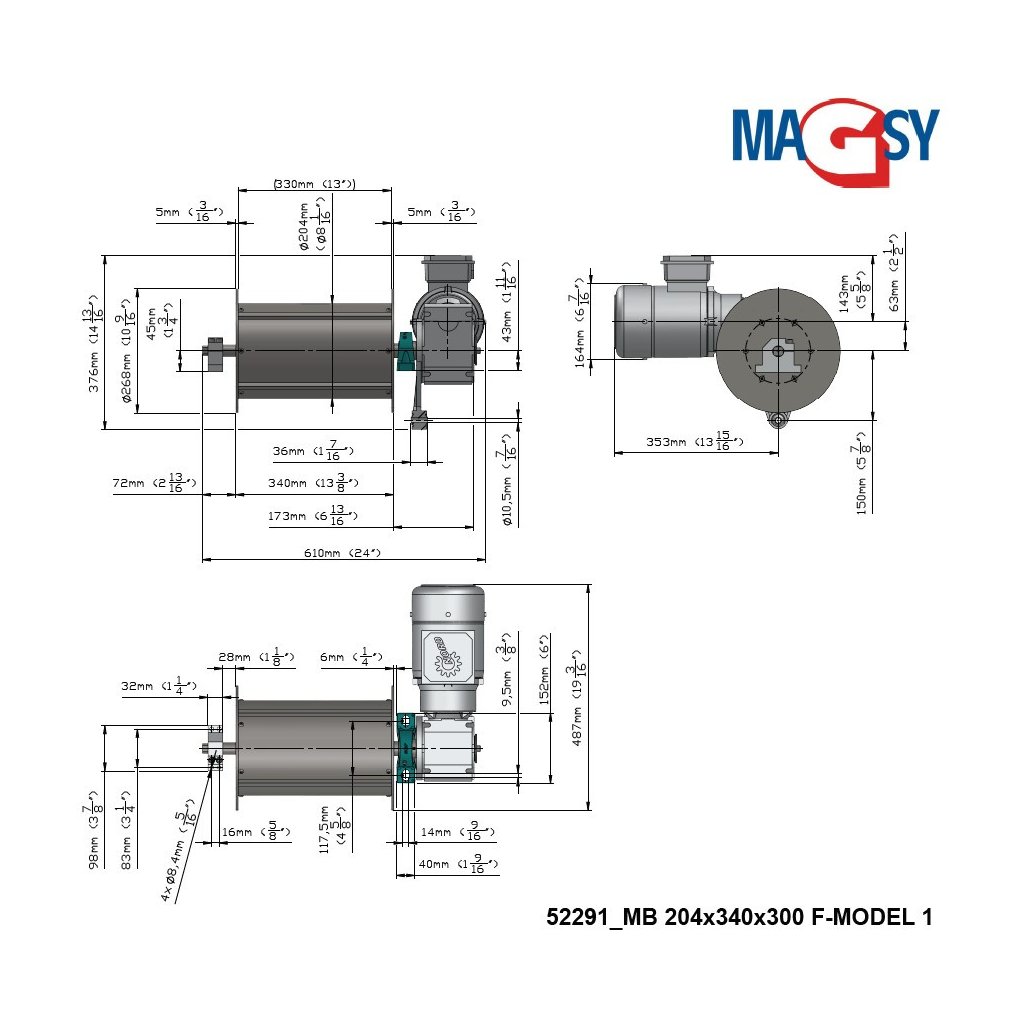 | Motor: | NORD - zweistufig (0,37/0,55 kW, 17/34,5 U/min, Schutzart IP 55, 230/400 V, 50 Hz |