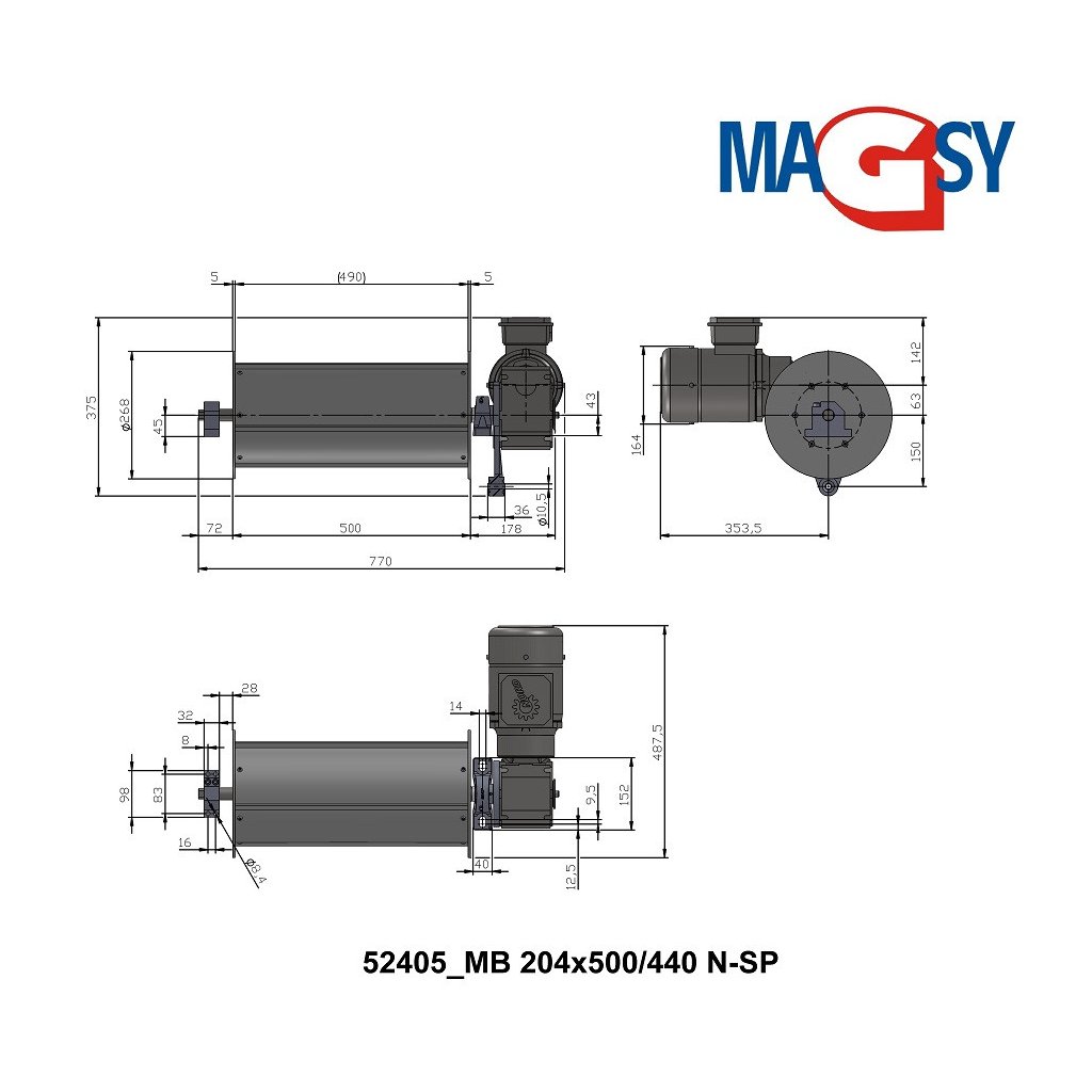 | Motor: | NORD - zweistufig (0,37/0,55 kW, 17/34,5 U/min, Schutzart IP 55, 230/400 V, 50 Hz |